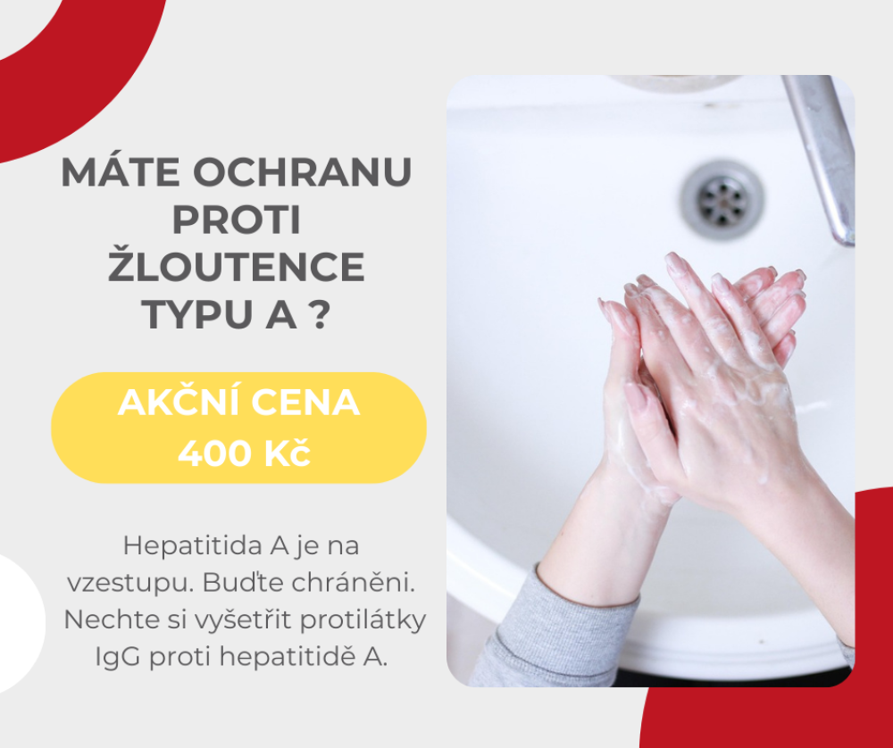 V souvislosti s aktuálně zvýšeným výskytem virové hepatitidy A nabízíme samoplátcům možnost vyšetření protilátek IgG za zvýhodněnou cenu.